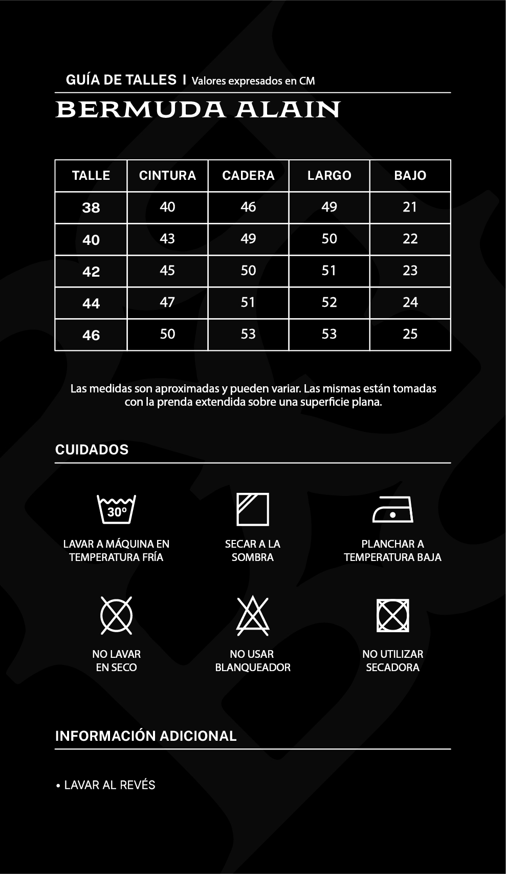 Válido para este producto y todos los de la categoría: Ropa -> Bermudas, Ropa -> Remeras, camisetas y chombas, Ropa -> Pantalones, Ropa -> Buzos y sweaters, Ropa -> Camisas, Ropa -> Shorts de baño, Accesorios, Accesorios -> Gorras, Accesorios -> Boxers.