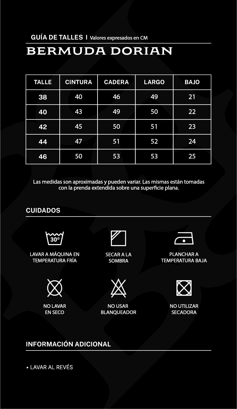 Válido para este producto y todos los de la categoría: Ropa -> Bermudas, Ropa -> Remeras, camisetas y chombas, Ropa -> Pantalones, Ropa -> Buzos y sweaters, Ropa -> Camisas, Ropa -> Shorts de baño, Accesorios, Accesorios -> Gorras, Accesorios -> Boxers.